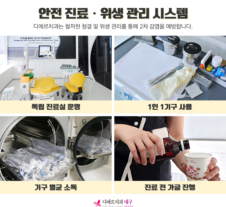 디에르치과는 진료 시 사용하는 모든 기구들을 멸균 소독 과정을 거쳐