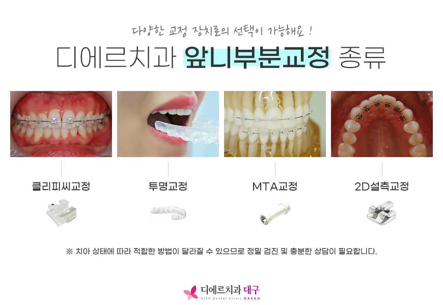 자가 결찰 방식의 클리피씨 교정, 앞니 교정에 최적화된 미니 튜브 장치의 MTA 교정,