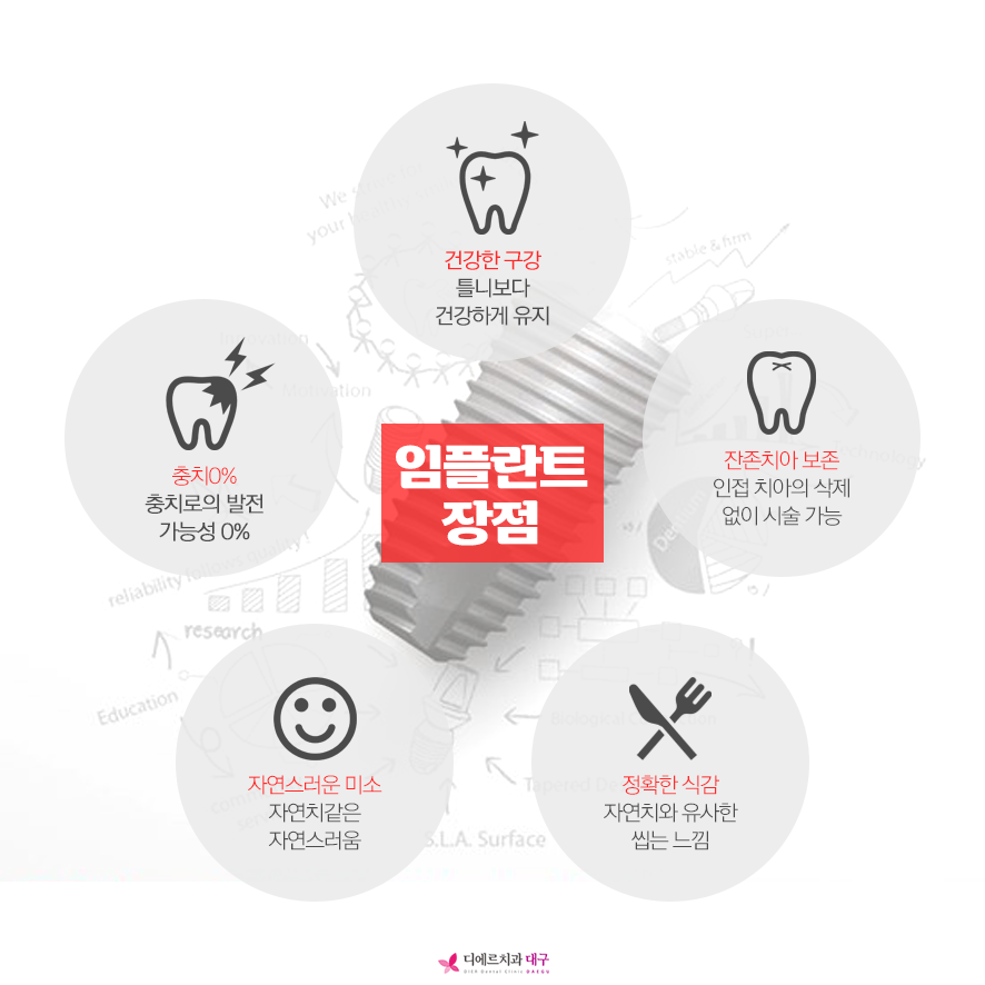 브릿지나 틀니 같은 치료방법도 있지만 기능적, 심미적으로 봤을 때, 또 장기적으로 봤을 때 만족도가 높고 효율적입니다.