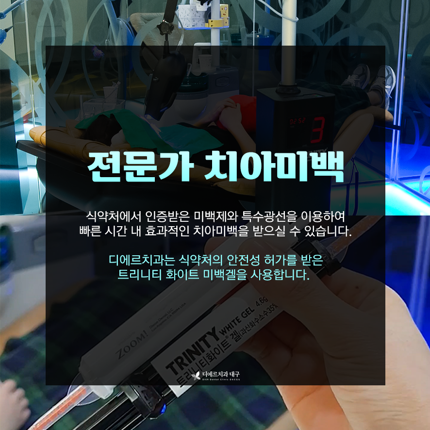 치아미백은 안전한 약물과 장비를 사용이 중요하지만,