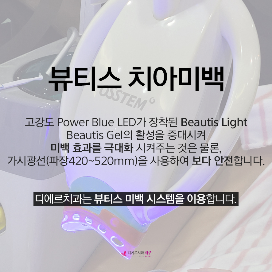 디에르치과는 트리니티 화이트 시스템과 오스템 뷰티스 미백을 이용합니다.