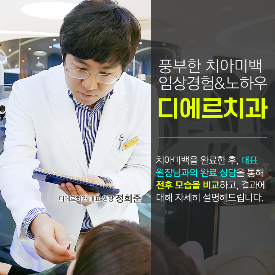 디에르치과는 풍부한 치아미백 이상 경험과 노하우를 지닌 치과입니다.