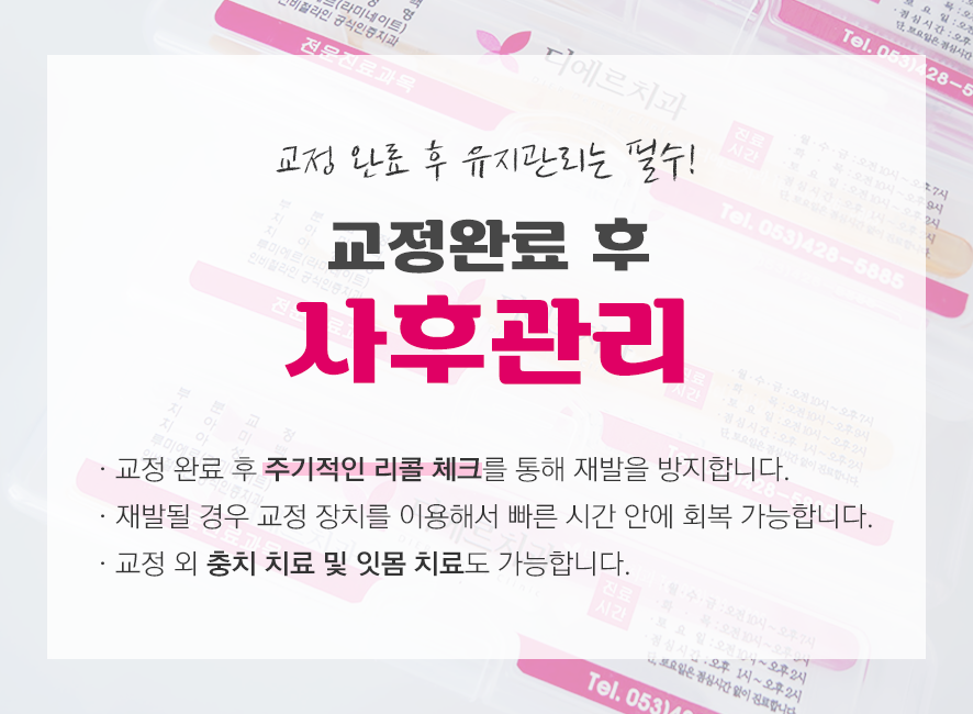 교정이 완료된 후에도 철저한 유지 및 관리를 통해 상태를 관리하는 것 역시 중요합니다.