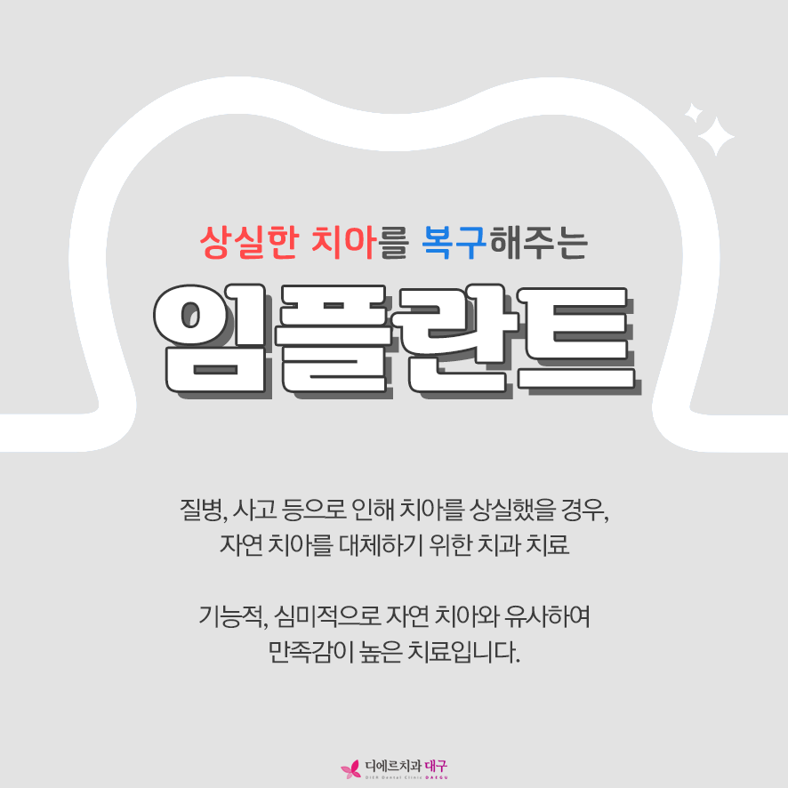 탈락된 치아를 대신할 인공치아를 식립하는 수술을 말한다.
