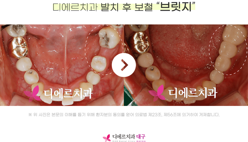 발치 후 빈 공간을 그대로 두면 주변 치아가 쏠려 치열이 흐트러지거나 잇몸뼈가 흡수될 수 있으므로 자연 치아의 역할을 대신 해줄 보철 치료를 해야합니다.