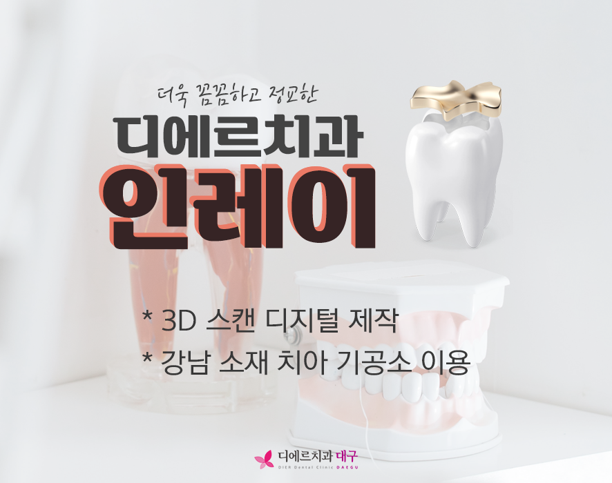디에르치과는 강남 소재 치아 기공소를 이용하며 3D 스캔 디지털 제작 방식으로 더욱 정교한 인레이 제작이 가능합니다.