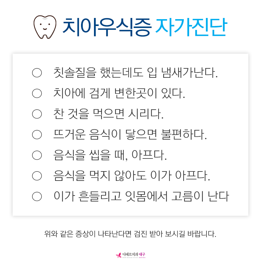 치아가 검게 변하거나 구멍이 생기면 충치를 의심해볼 수 있으며, 빠른 시일 내에 치과를 찾아 검진을 받아보는 것이 좋습니다.