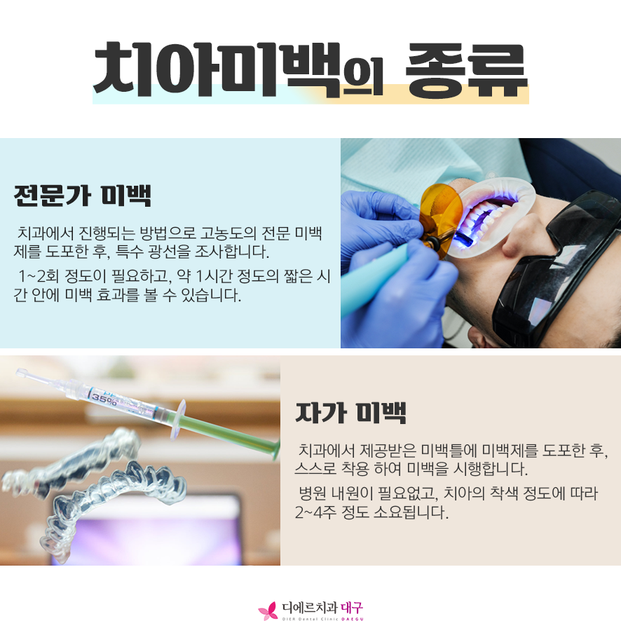 다 확실한 미백 효과를 원하는 분들은 전문가 치아미백을 선택하는 게 좋습니다.