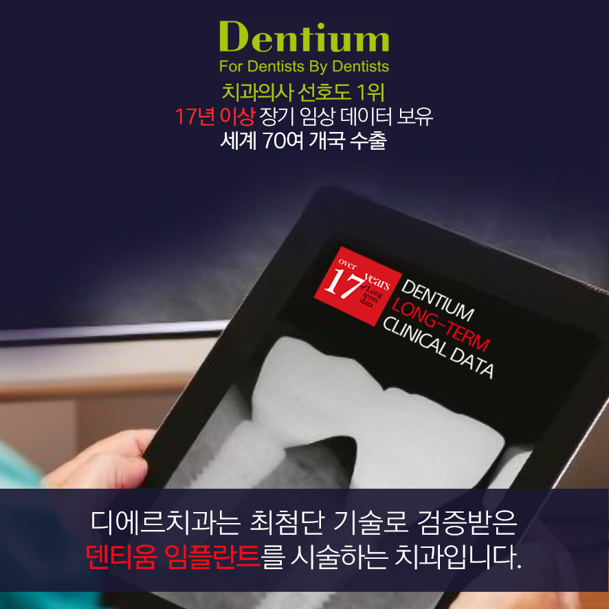 디에르치과는 2008년 개원하여 한자리에서 15년 이상 진료하고 있으며 치료 중간에 의사가 바뀌지 않습니다.