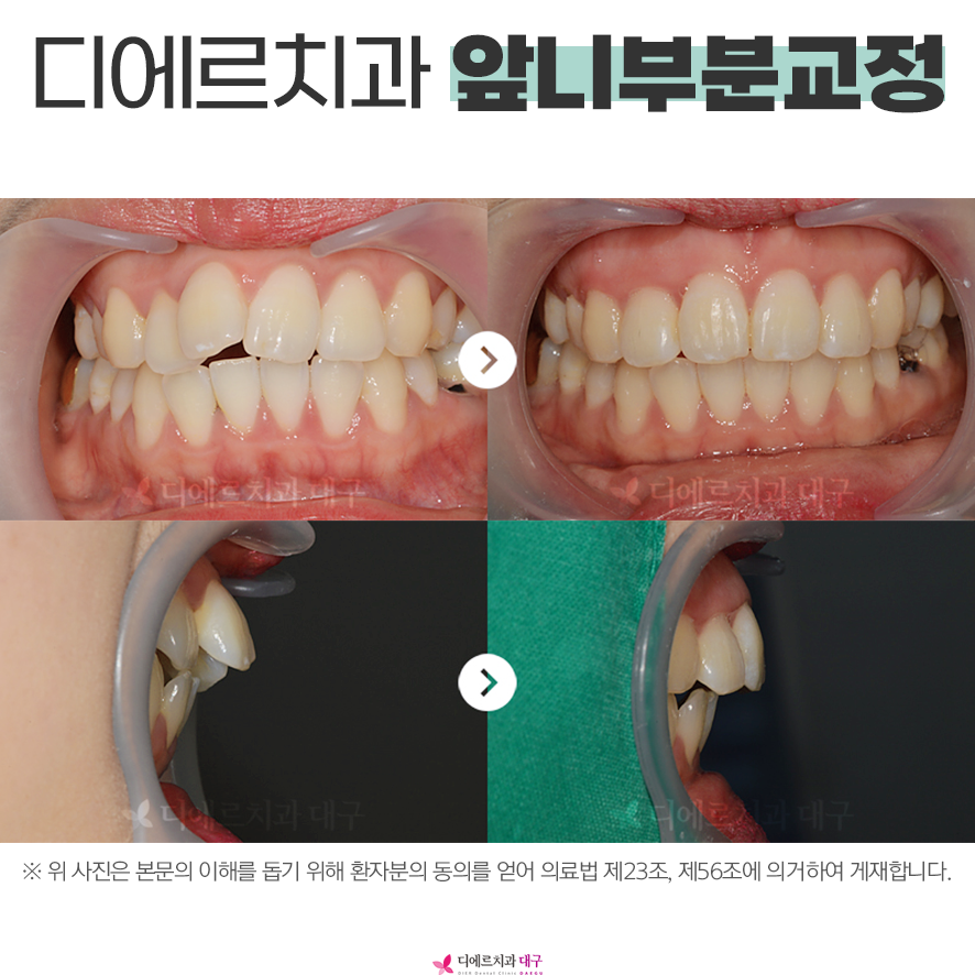 앞니 부분 교정은 외적인 부분에서도 눈에 가장 잘 띄는 부위를 치료하여