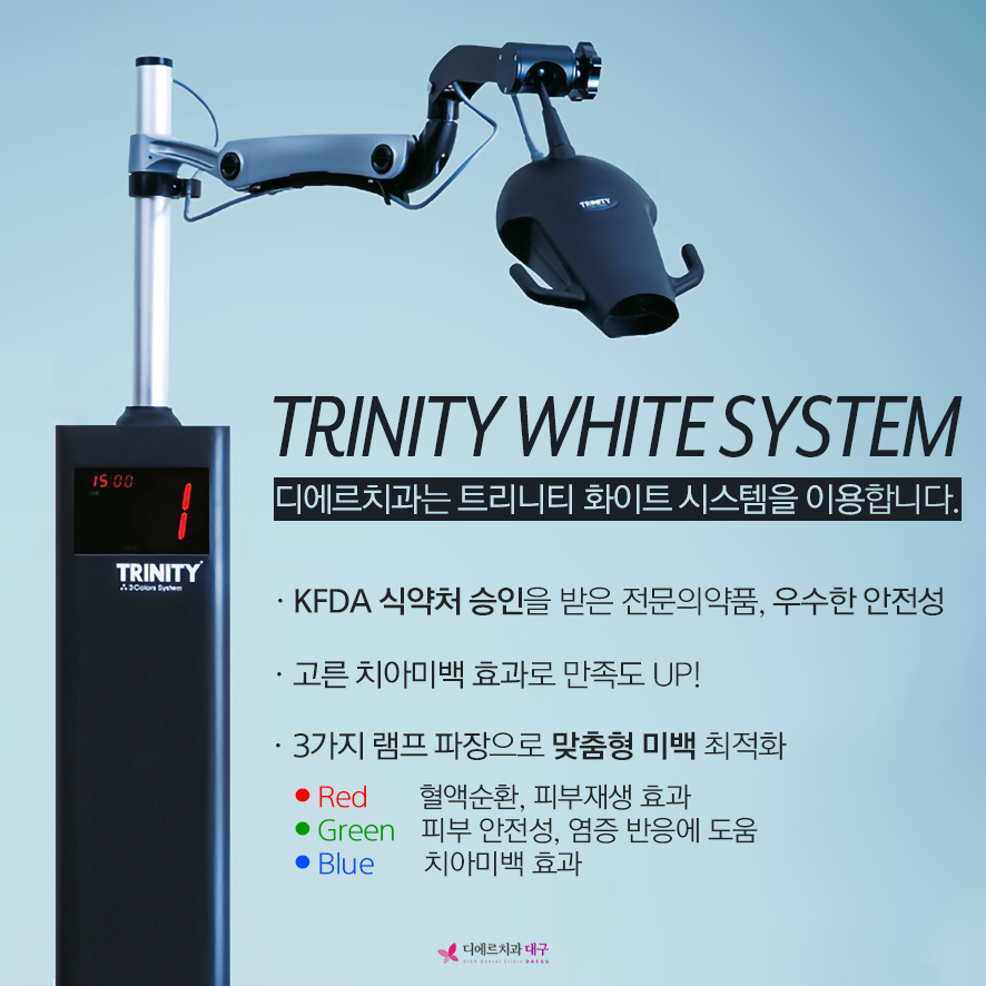 디에르치과 치아미백은 트리니티 치아미백 시스템을 이용합니다.