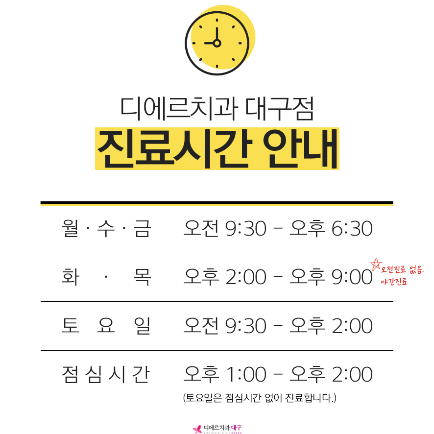 대구 중구 동성로 위치. 치아교정, 라미네이트, 치아미백, 앞니부분교정, 인비절라인. 매주 화,목 야간진료