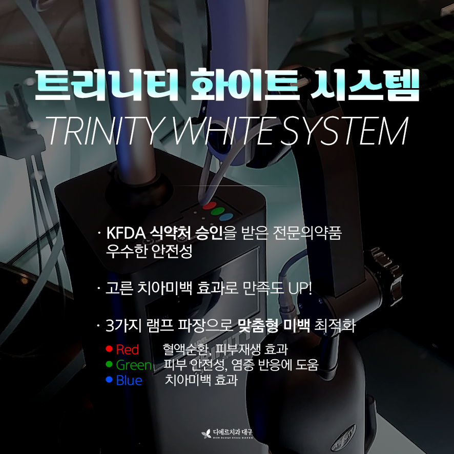 디에르치과는 식약처에서 인증받은 트리니티 화이트 시스템을 이용 합니다.