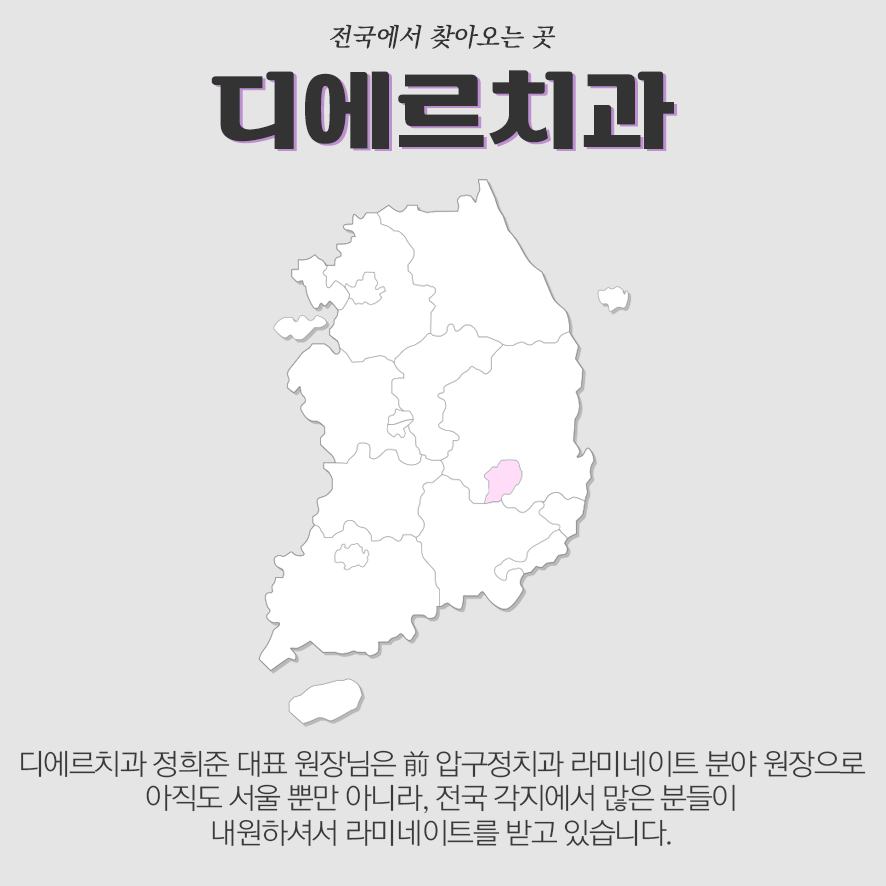 디에르치과 정희준 대표 원장님은 前 압구정 치과 라미네이트 분야 원장 출신으로 20년 이상의 풍부한 임상 경험을 지니고 있으며, 서울뿐만 아니라 전국 각지에서 많은 분들이 라미네이트를 받기 위해 찾고 있습니다.