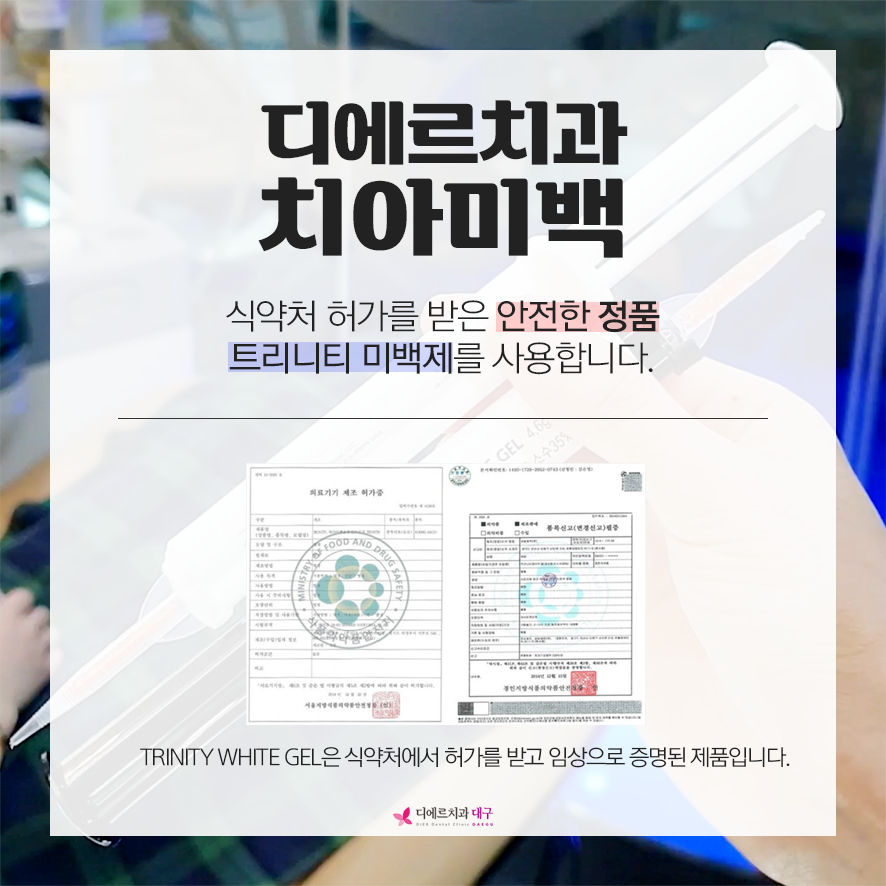 | 대구치아미백 식약처 안전성 인증 (1) | 2024.06.13 |