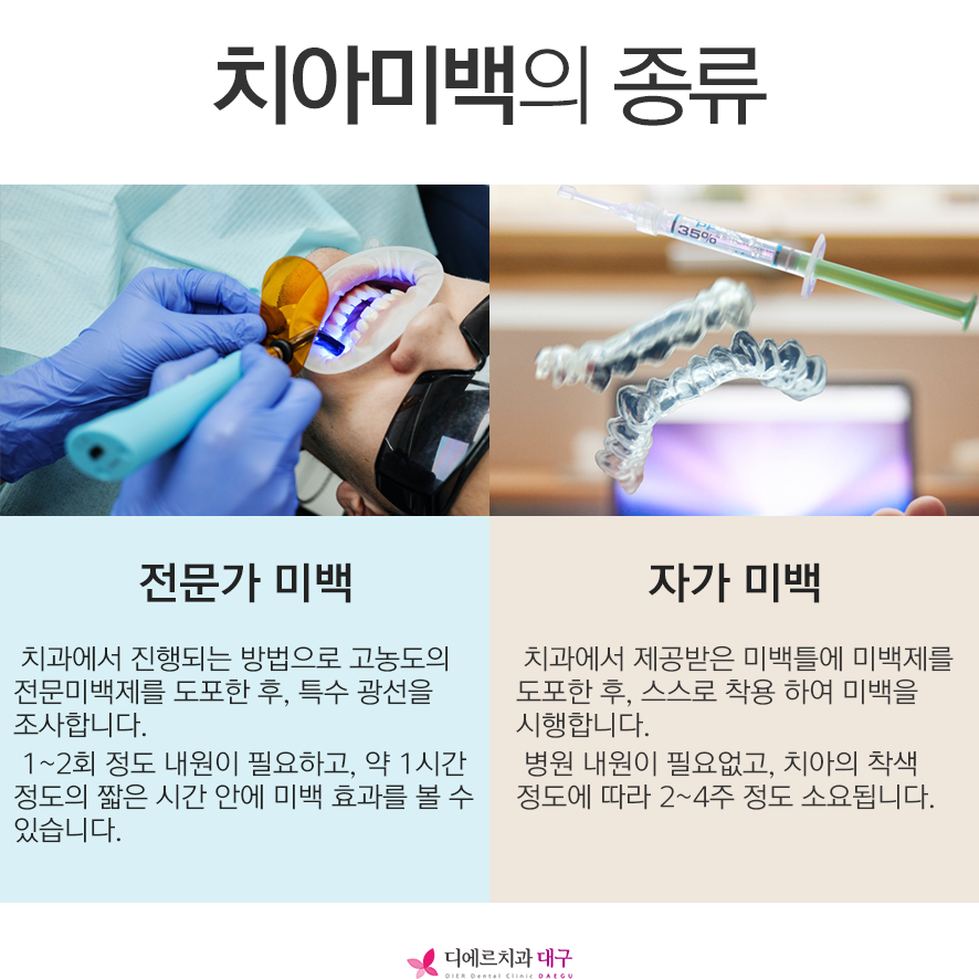 다 확실한 미백 효과를 원하는 분들은 전문가 치아미백을 선택하는 게 좋습니다.