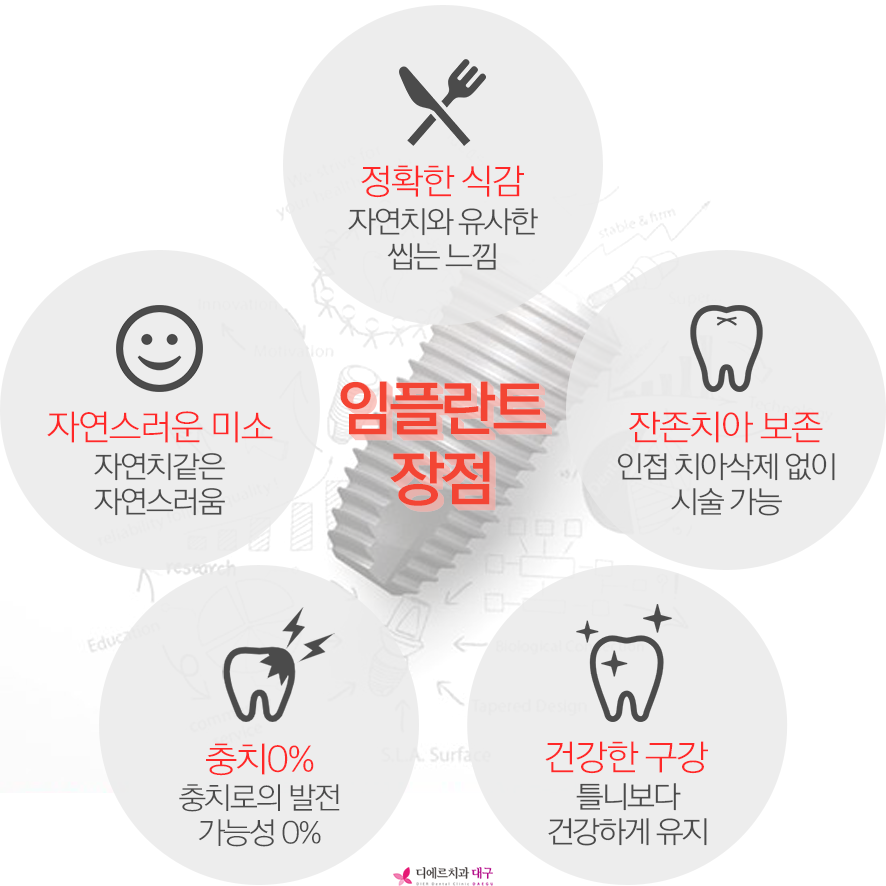 기본적으로 치근을 잇몸 뼈에 고정을 시키기 때문에 고정력이 있어