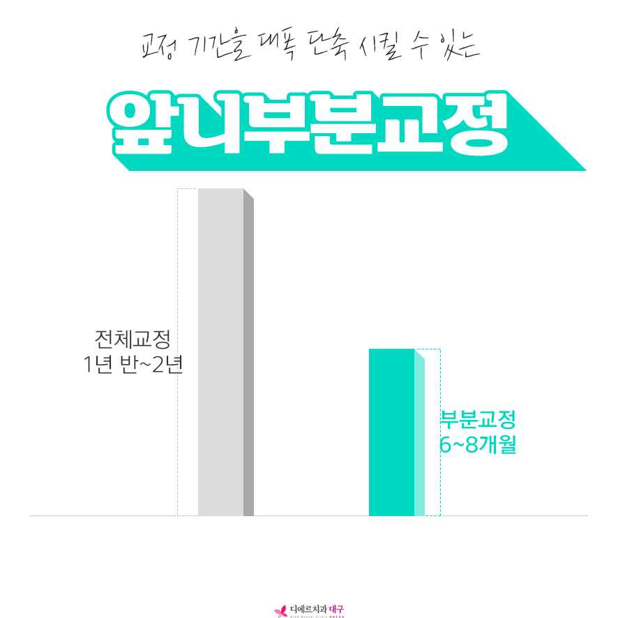 앞니부분만 교정하여 교정 기간과 비용 모두 전체 교정에 비해