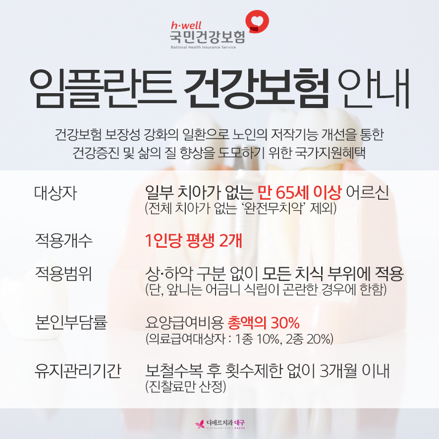 특히 임플란트에는 신경조직이 없어 이상이나 통증을 느끼기 어려워 정기 검진을 통해 미리 체크하고 살펴보아야 합니다.