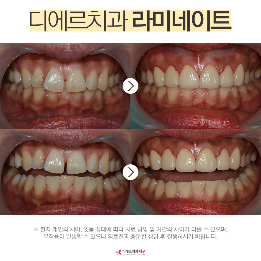 디에르치과는 대표 원장님과의 충분한 상담을 통해 치아를 면밀히 체크하여 환자분 개인의 치아 상태에 적합한 방법을 통해 맞춤형 라미네이트로 진료합니다.