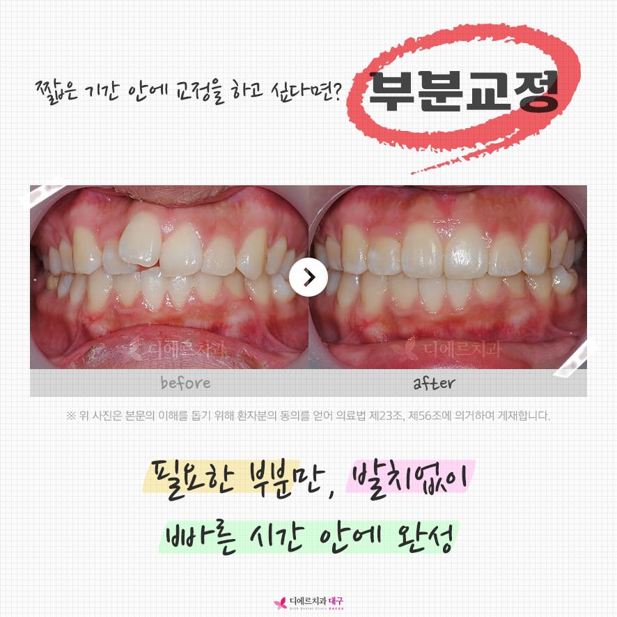 의료진의 정밀한 진단과 치료계획이 뒷받침 되어야 부분교정도 만족할 만한 효과를 기대할 수 있습니다