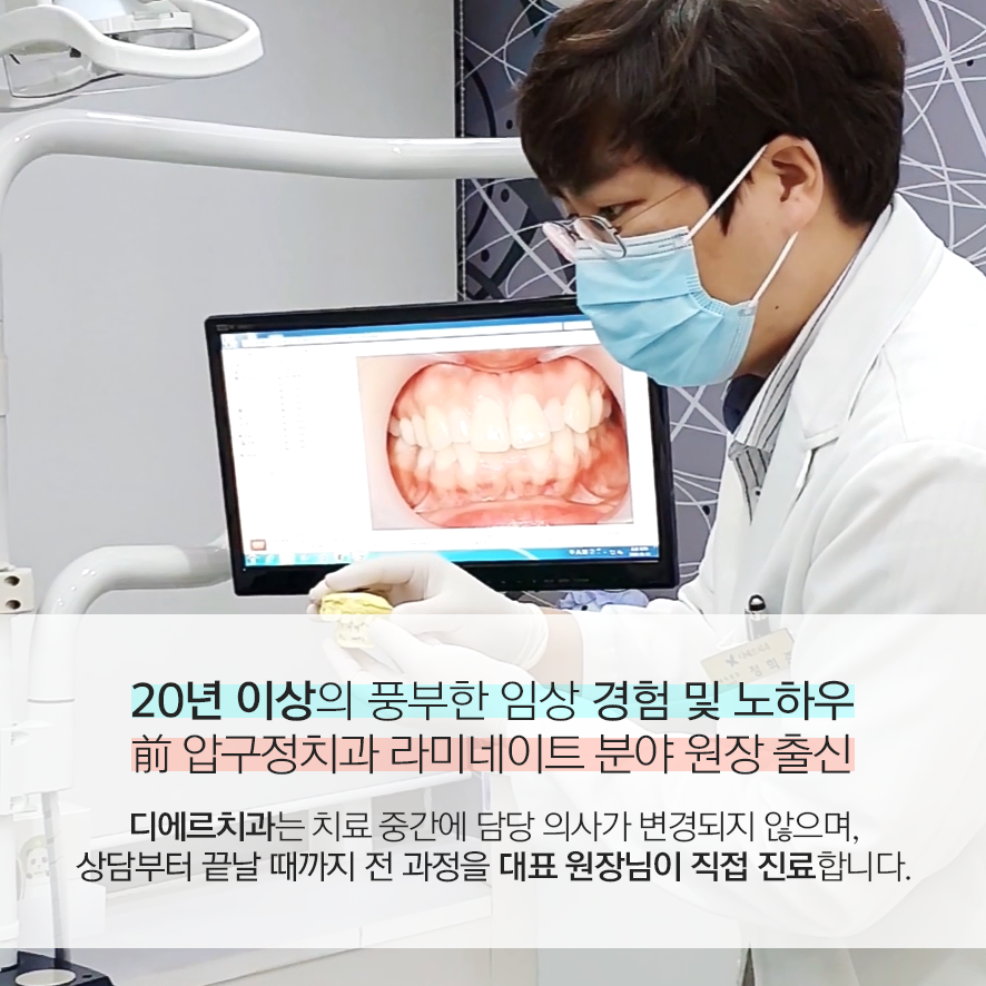 20008년 개원한 디에르치과는 20년 이상 임상경험의 정희준 대표 원장님이 진료하고 있습니다.