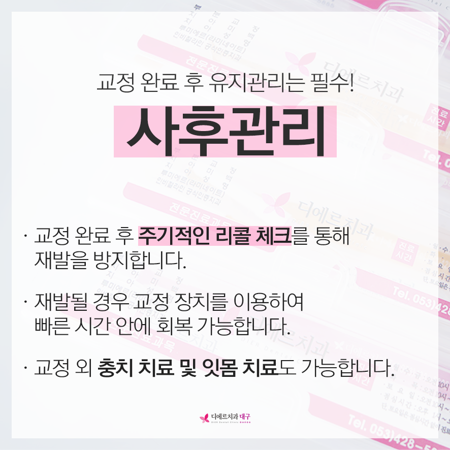 교정이 완료된 후에도 철저한 유지 및 관리를 통해 상태를 관리하는 것 역시 중요합니다.