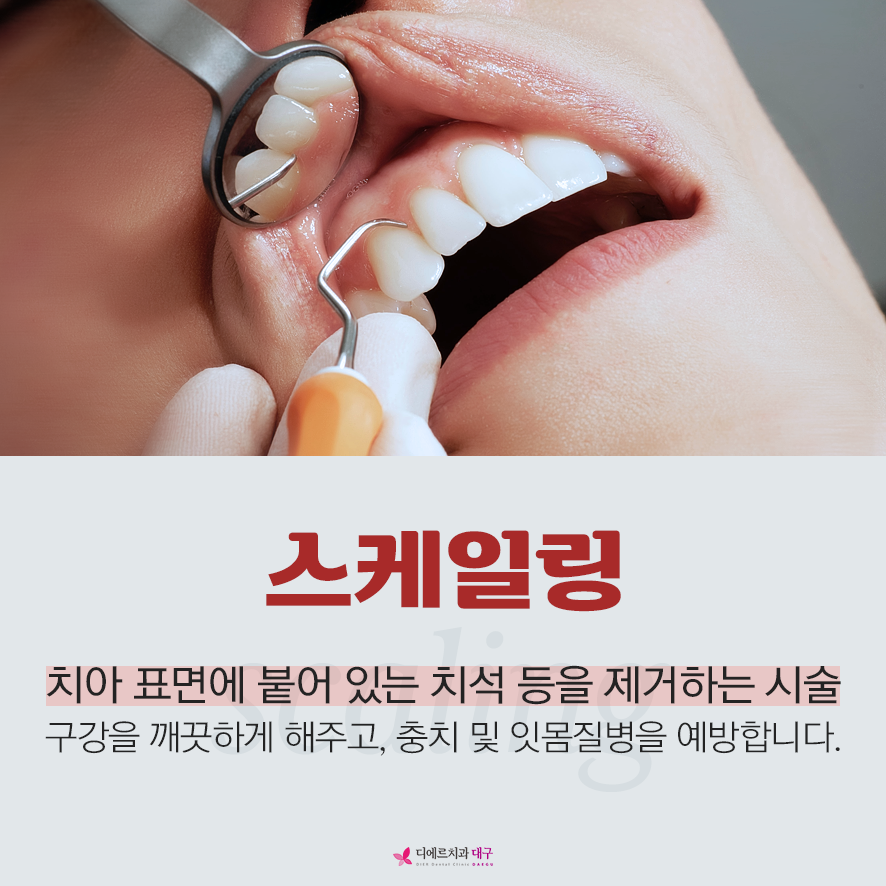 스케일링은 국민건강보험에 가입되어 있는 만 19세 이상의 성인 기준 연 1회 저렴한 가격으로 스케일링 치료를 받을 수 있습니다.