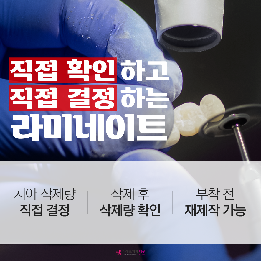 디에르치과는 대표 원장님과의 상담에서 직접 치아 삭제량을 결정하고 확인할 수 있으며 보철물 부착 전, 확인 후 제재작이 가능합니다.